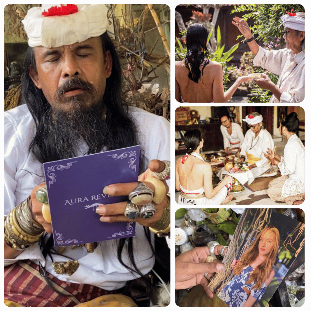 Duku, a gifted aura reader from Bali, descends from 30+ generations of shamans. His practice is inherited, sacred, and deeply intuitive. When he receives your photo, he enters meditation, using ancient rituals to read your aura’s colors, emotions, and energy layers.